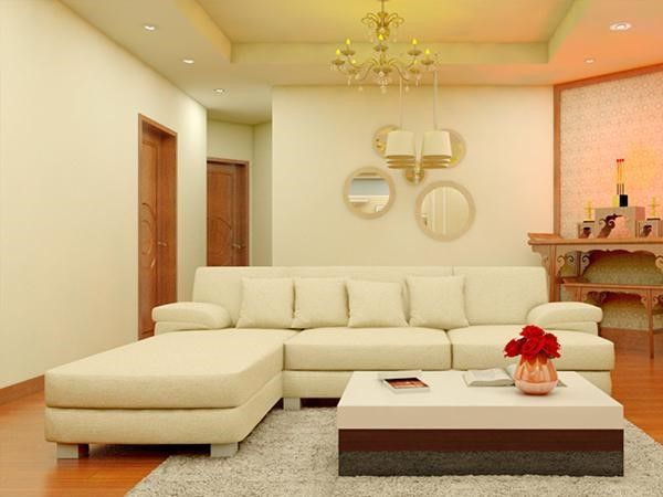Sơn phòng khách mệnh Kim vàng kem, vàng nhạt